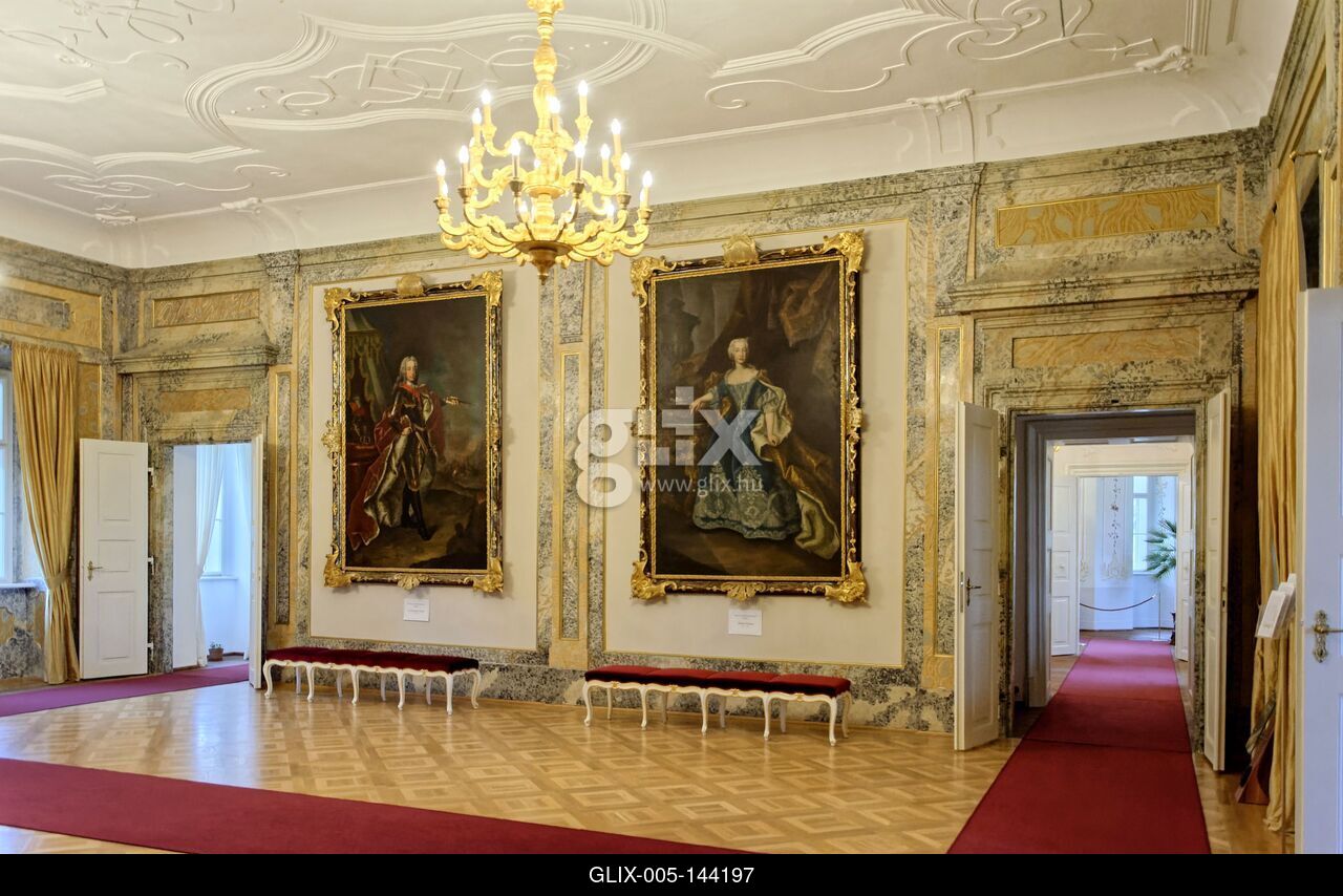 Hajósi érseki barokk kastély díszterme Mária Terézia Családjának festményeivel