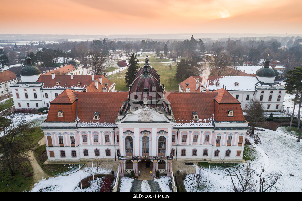 A gödöllői Grassalkovich-kastély télen, madártávlatból. A gödöllői Grassalkovich-kastély (vagy Gödöllői Királyi Kastély) a Grassalkovich családnak a város belterületén található kastélya. Ez Magyarország egyik legnagyobb barokk kastélya.Grassalkovich Royal castle in Godollo, Hungary