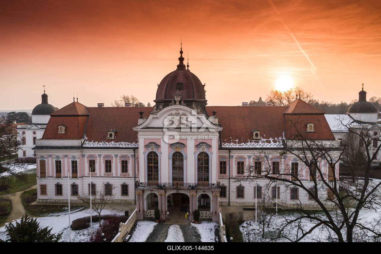 A gödöllői Grassalkovich-kastély télen, madártávlatból. A gödöllői Grassalkovich-kastély (vagy Gödöllői Királyi Kastély) a Grassalkovich családnak a város belterületén található kastélya. Ez Magyarország egyik legnagyobb barokk kastélya.Grassalkovich Royal castle in Godollo, Hungary