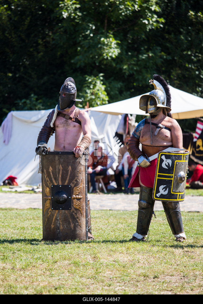 HUNGARY, SZOMBATHELY - AUGUST 28: Savaria Historical Festival at August 28, 2016 in Szombathely, Hungary. Savaria is a festival held annualy in Szombathely.Szombathely, 2016. 08. 28.Hagyományörzők bemutatója a Történelmi Témaparkban a Savaria Történelmi Karneválon.a Savaria Történelmi Karnevál, Közép-Európa legnagyobb historikus alapokra épülő összművészeti fesztiválja és szórakoztató eseménye.