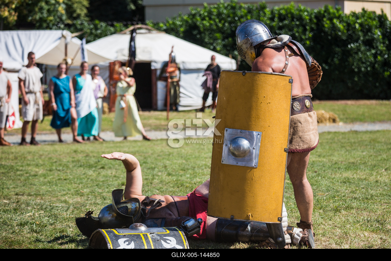 HUNGARY, SZOMBATHELY - AUGUST 28: Savaria Historical Festival at August 28, 2016 in Szombathely, Hungary. Savaria is a festival held annualy in Szombathely.Szombathely, 2016. 08. 28.Hagyományörzők bemutatója a Történelmi Témaparkban a Savaria Történelmi Karneválon.a Savaria Történelmi Karnevál, Közép-Európa legnagyobb historikus alapokra épülő összművészeti fesztiválja és szórakoztató eseménye.