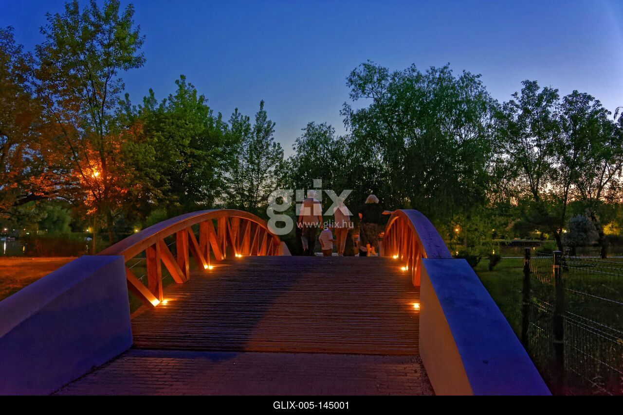 Nyíregyháza, átkelés a hídon szürkületkor a Sóstónál