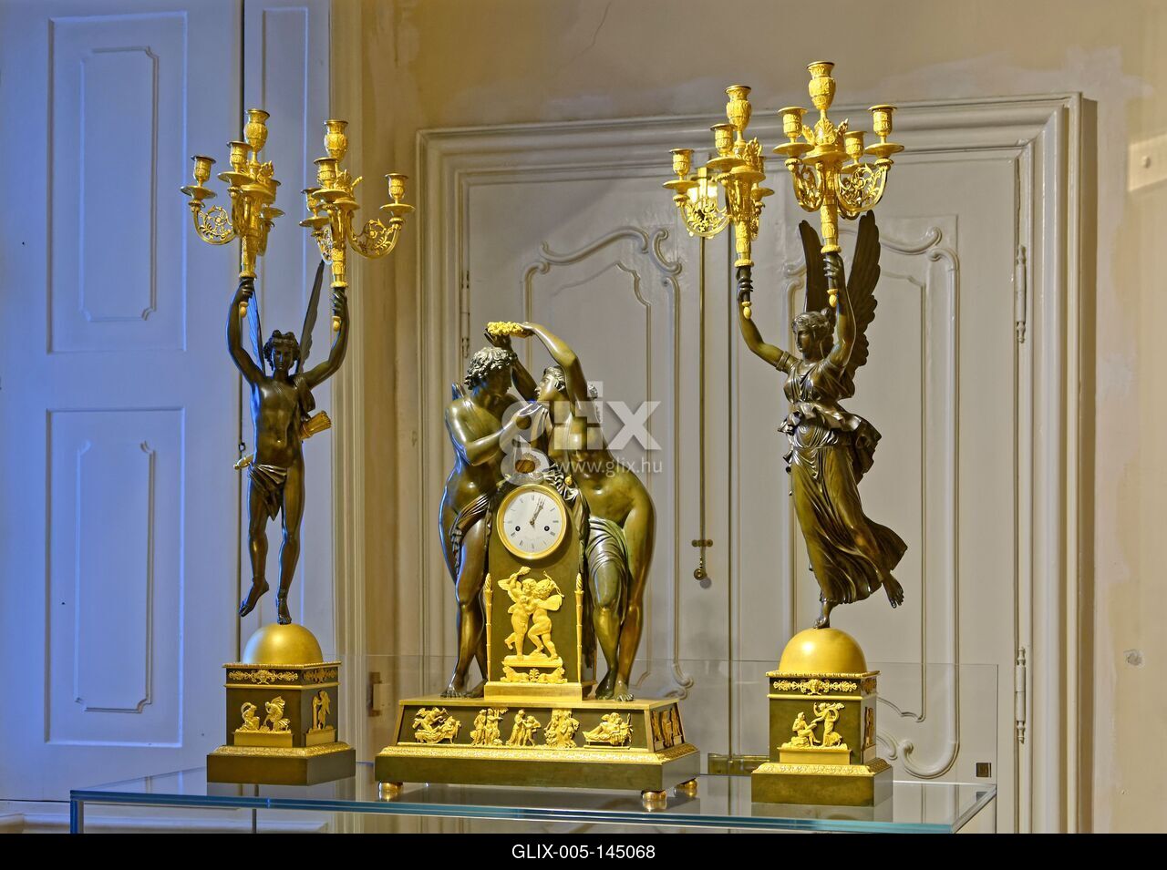 Eszterházy kastély kincsei, óra figurákkal és két angyal arany karos gyertyatartókkal