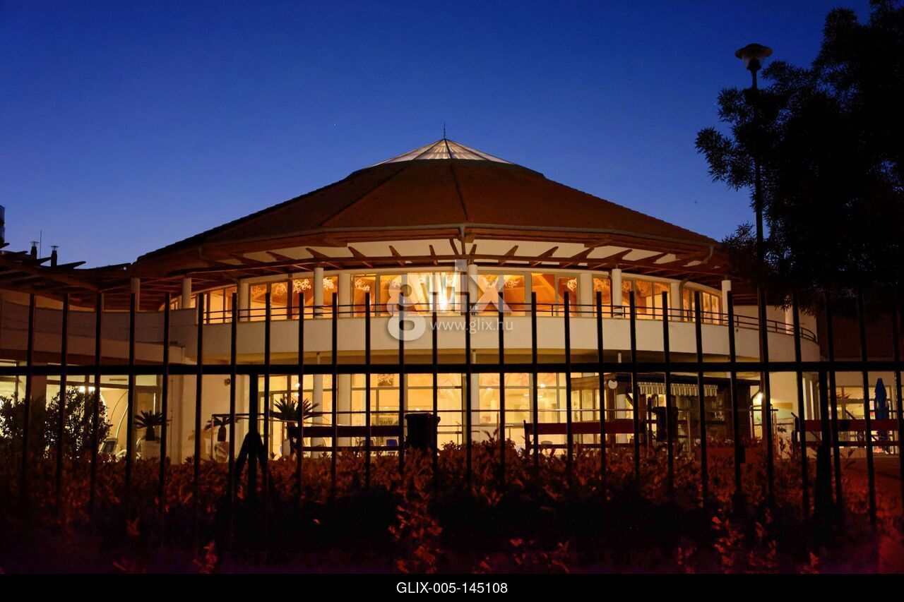 Nyíregyháza, sóstó Aquarius gyógyfürdő esti fényben
