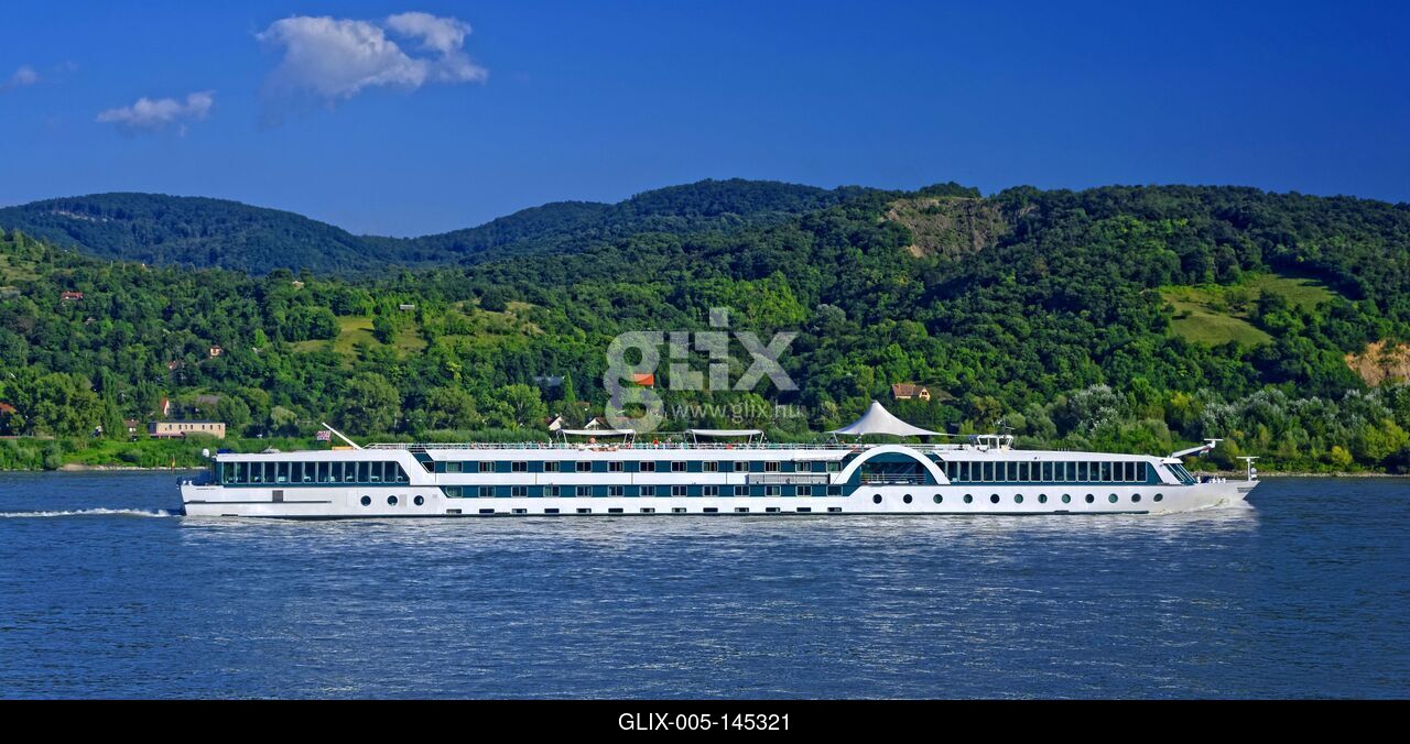 Fehér Luxushajó a dunán Visegrád előtt a Dunakanyrban