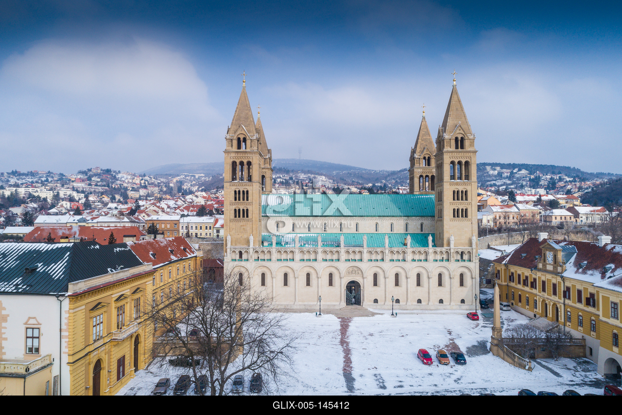 A pécsi székesegyház és környezete a március eleji havazást követően, a háttérben a Mecsek.A pécsi Szent Péter- és Szent Pál-székesegyház (pécsi dóm, bazilika vagy vártemplom) a Pécsi egyházmegye katedrálisa, a város egyik jellegzetes épülete. A 11. századi alapokkal rendelkező székesegyház mai formáját a 19. század végén érte el Pollack Mihály tervei alapján.