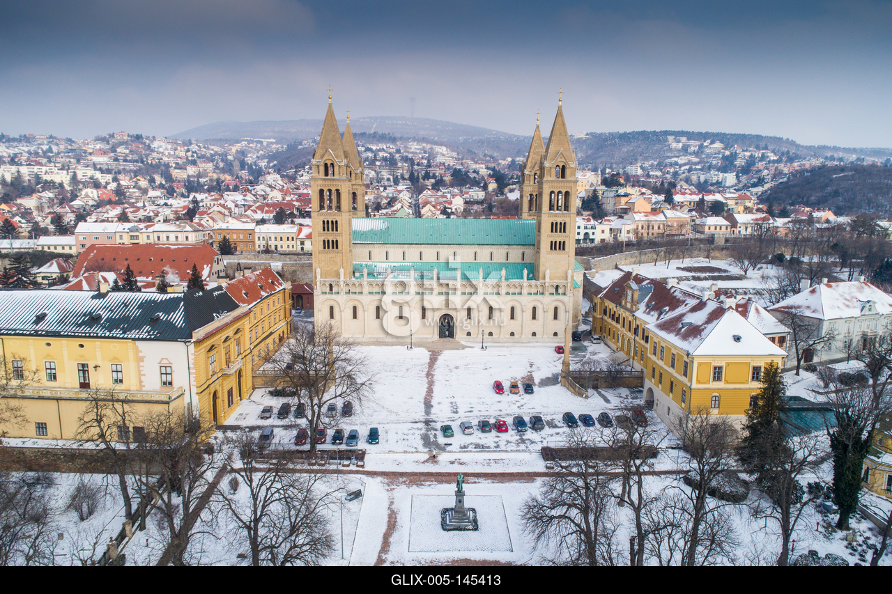 A pécsi székesegyház és környezete a március eleji havazást követően, a háttérben a Mecsek.A pécsi Szent Péter- és Szent Pál-székesegyház (pécsi dóm, bazilika vagy vártemplom) a Pécsi egyházmegye katedrálisa, a város egyik jellegzetes épülete. A 11. századi alapokkal rendelkező székesegyház mai formáját a 19. század végén érte el Pollack Mihály tervei alapján.