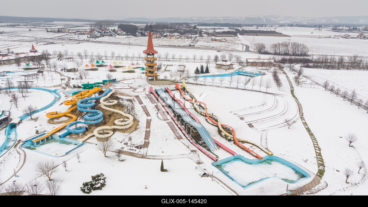 A zalaegerszegi AquaCity Vízicsúszda- és Élménypark télen madártávlatból.