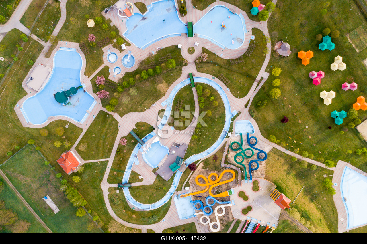 A zalaegerszegi AquaCity Vízicsúszda- és Élménypark tavasszal madártávlatból.