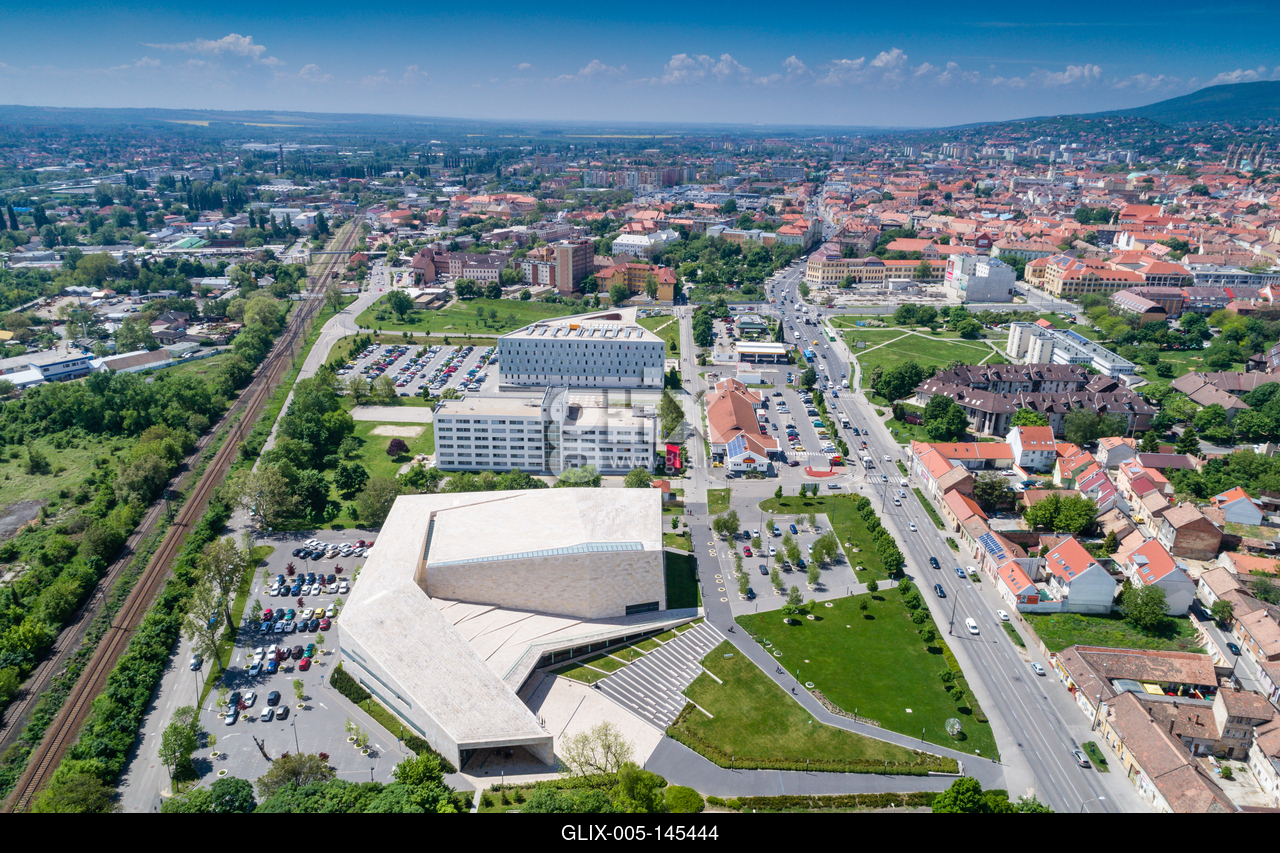 Bird eye view of Pecs, Hungary.Pécs madártávlatból, az előtérben a Zsolnay-nyegyed