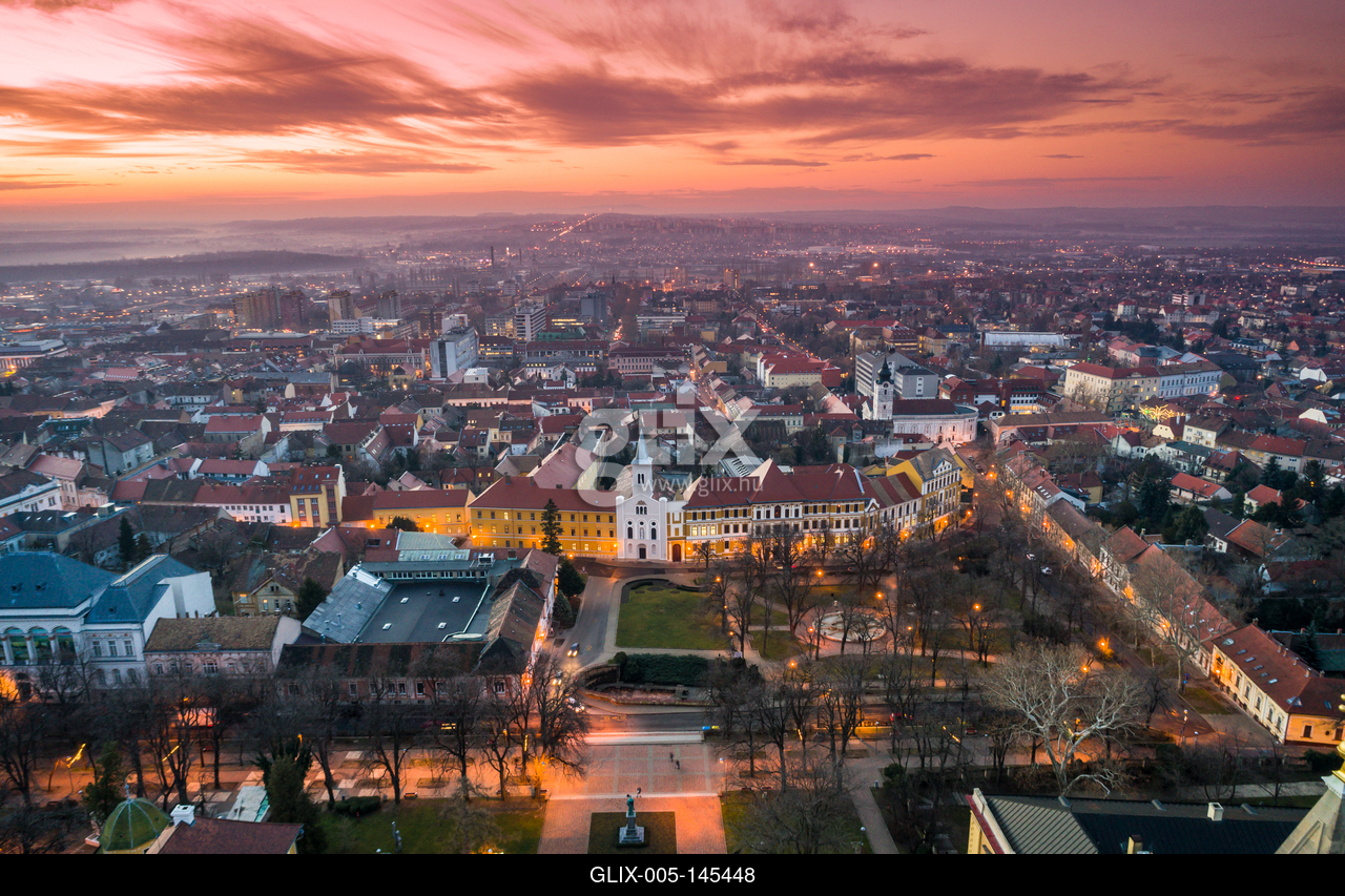 Pécs madártávlatból, az előtérben a Szent István tér
