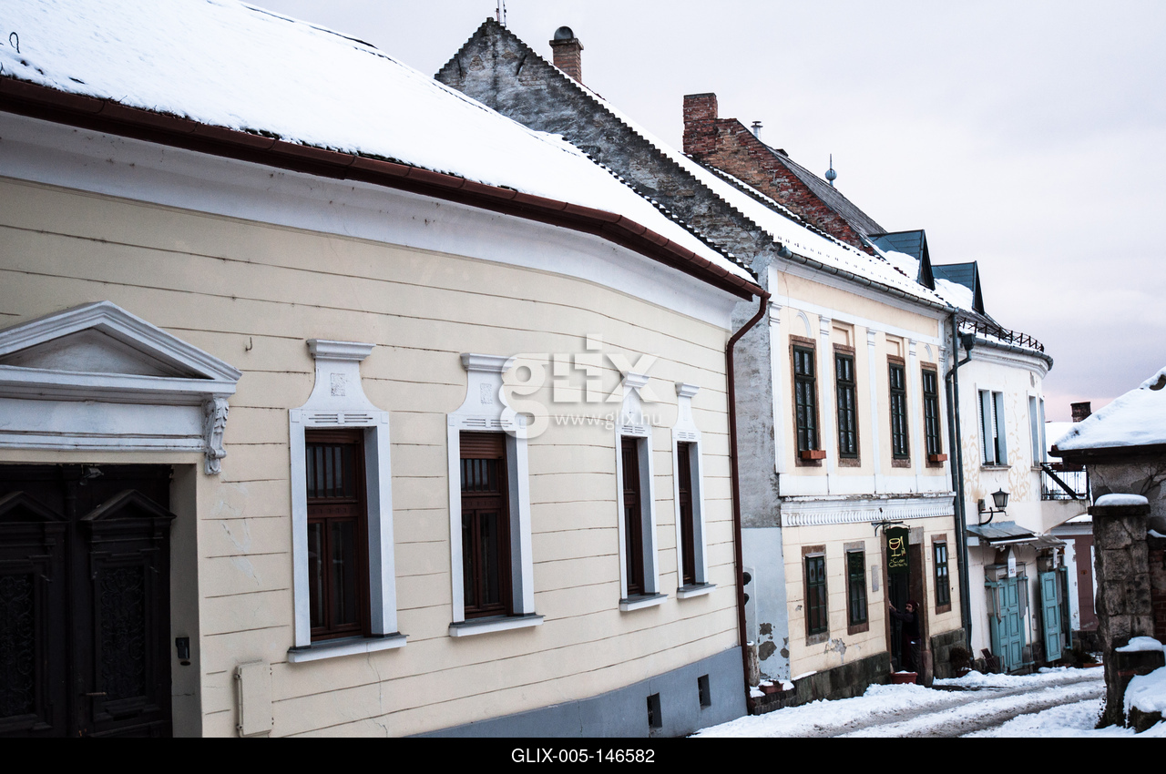 Szentendre, műemlék házak a Dumtsa Jenő utcában. Szentendre a Dunakanyar egyik legszebb települése mediterrán atmoszférájával, hangulatos macskaköves utcácskáival.
