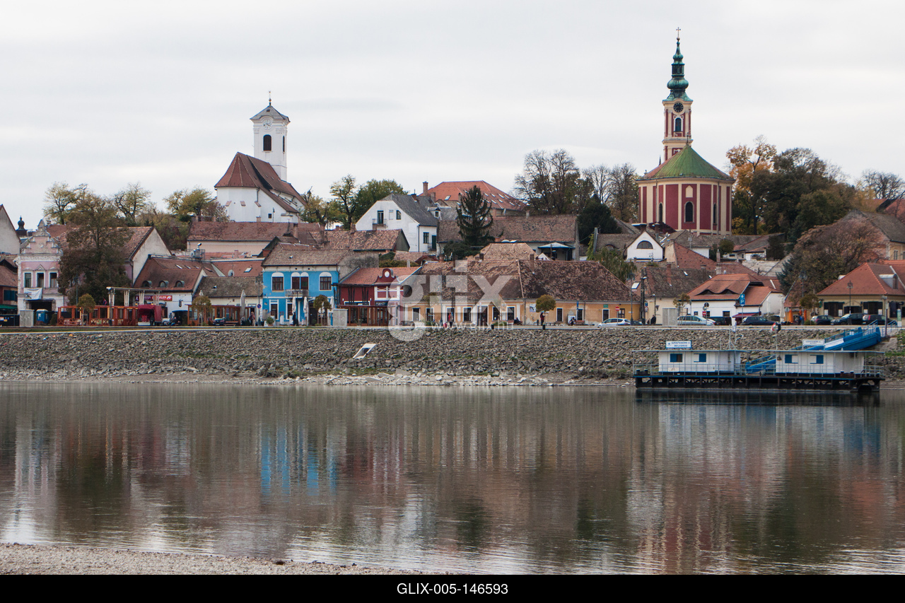 Szentendre látványa a Szentendrei-szigetről. Szentendre a Dunakanyar egyik legszebb települése mediterrán atmoszférájával, hangulatos macskaköves utcácskáival.