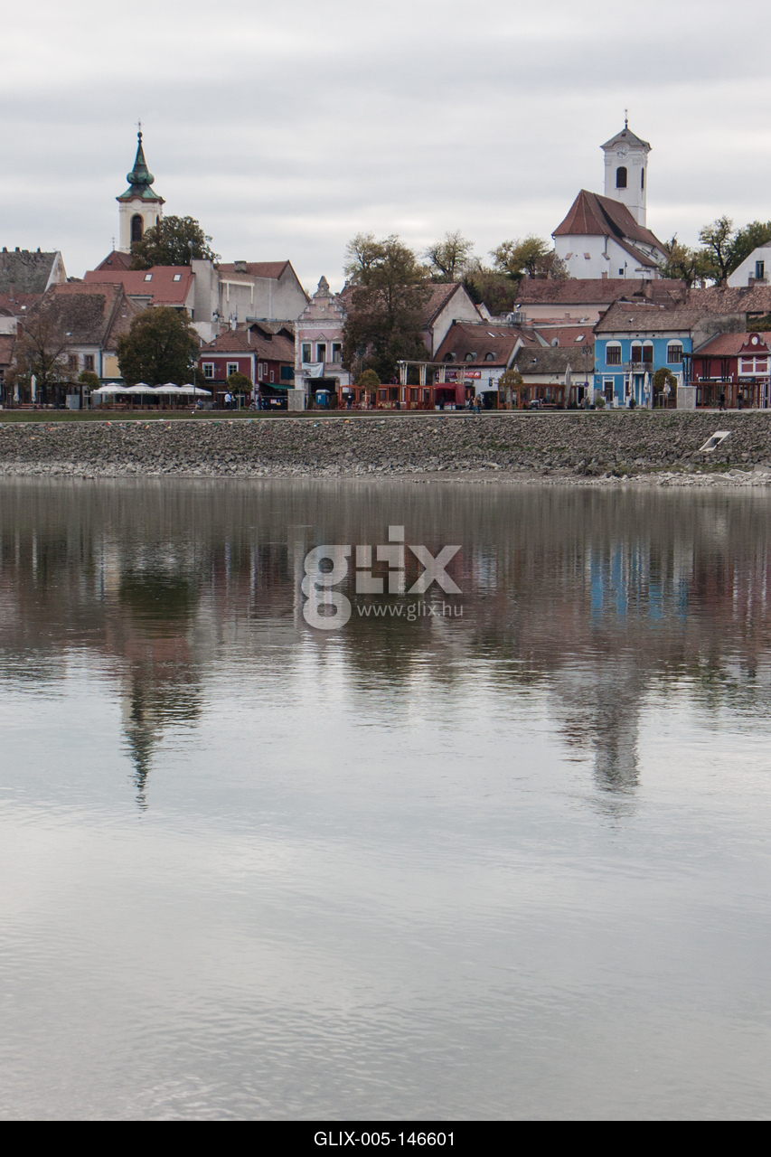 Szentendre látványa a Szentendrei-szigetről. Szentendre a Dunakanyar egyik legszebb települése mediterrán atmoszférájával, hangulatos macskaköves utcácskáival.