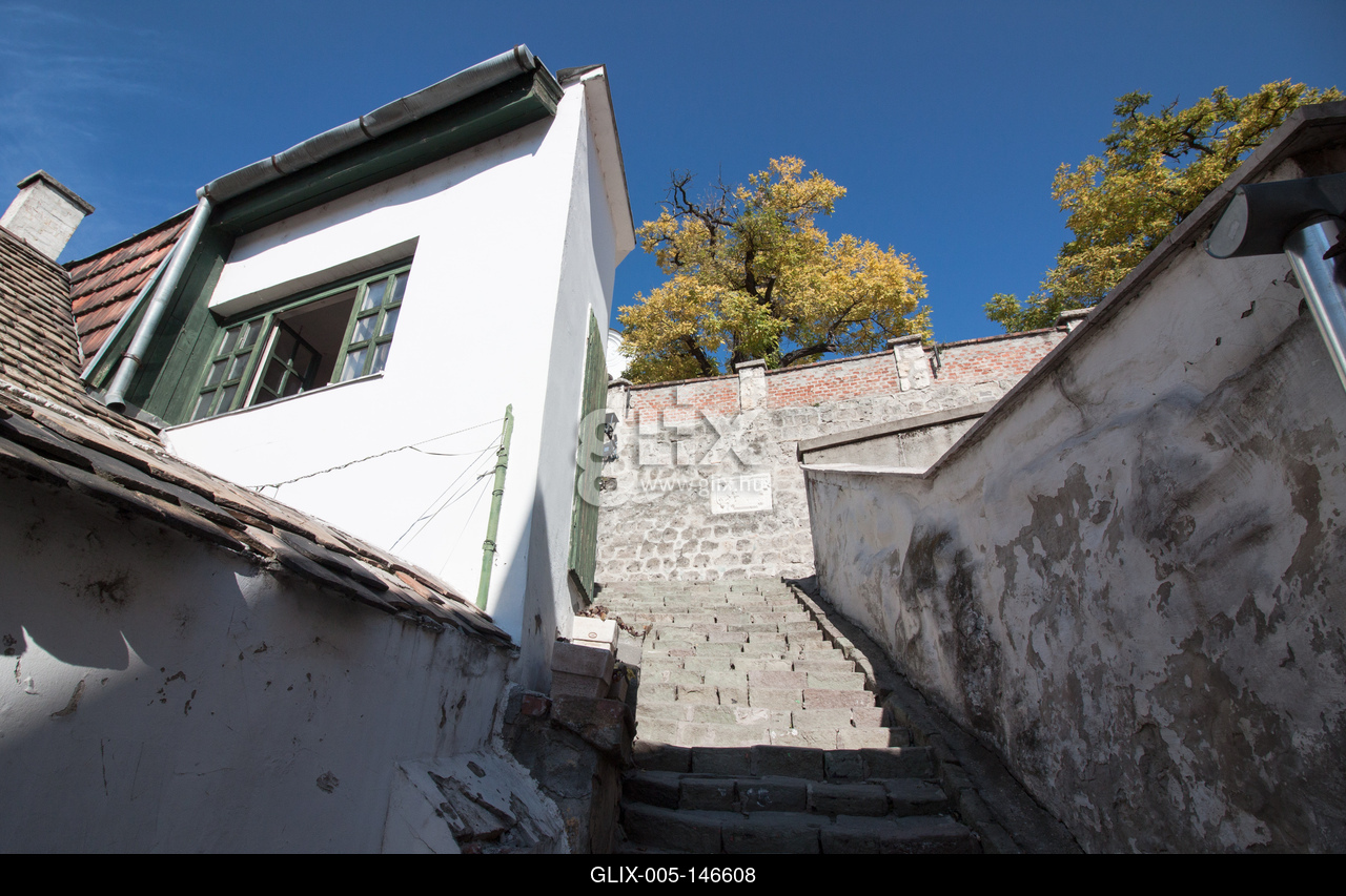 Szentendre, műemlék ház a Várdomb aljában. Szentendre a Dunakanyar egyik legszebb települése mediterrán atmoszférájával, hangulatos macskaköves utcácskáival.