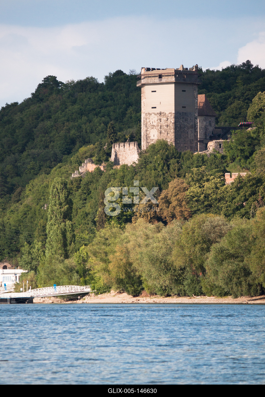 Visegrád, Salamon-torony. Az alsóvár lakótornya, az ún. Salamon-torony a korszak magyarországi építészetében szinte egyedülálló épület. 13. századi főbejárata az első emeletről nyílott, innen vezetett az emeletre a déli falsarkba beépített lépcsőház. Az emeleti termeket oszlopos kandallók fűtötték, és gazdagon tagozott ikerablakok világították meg.
