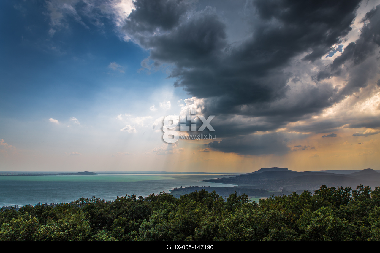 Viharos felhők érkeznek a Balatonra, egy nyári napon.