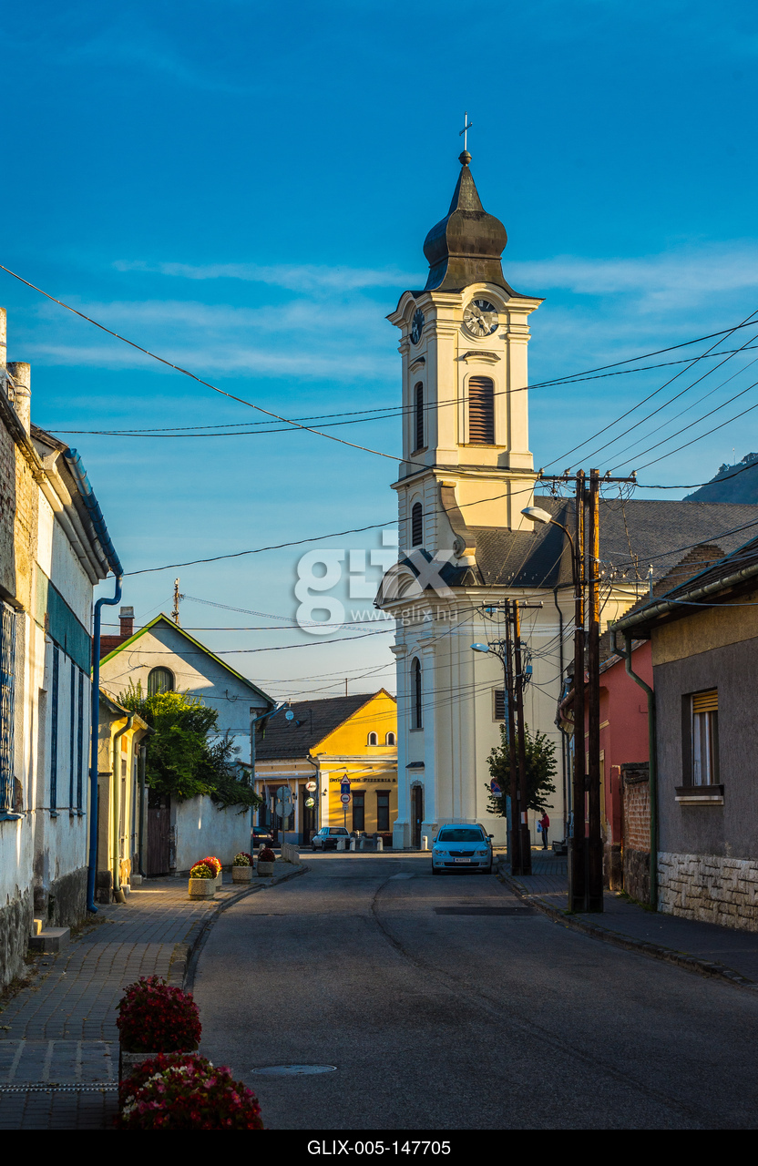 Visegrádi utcakép, a Keresztelő Szent János Római Katolikus Plébániatemplom. A barokk stílusú templom az 1700-as évek második felében épült.