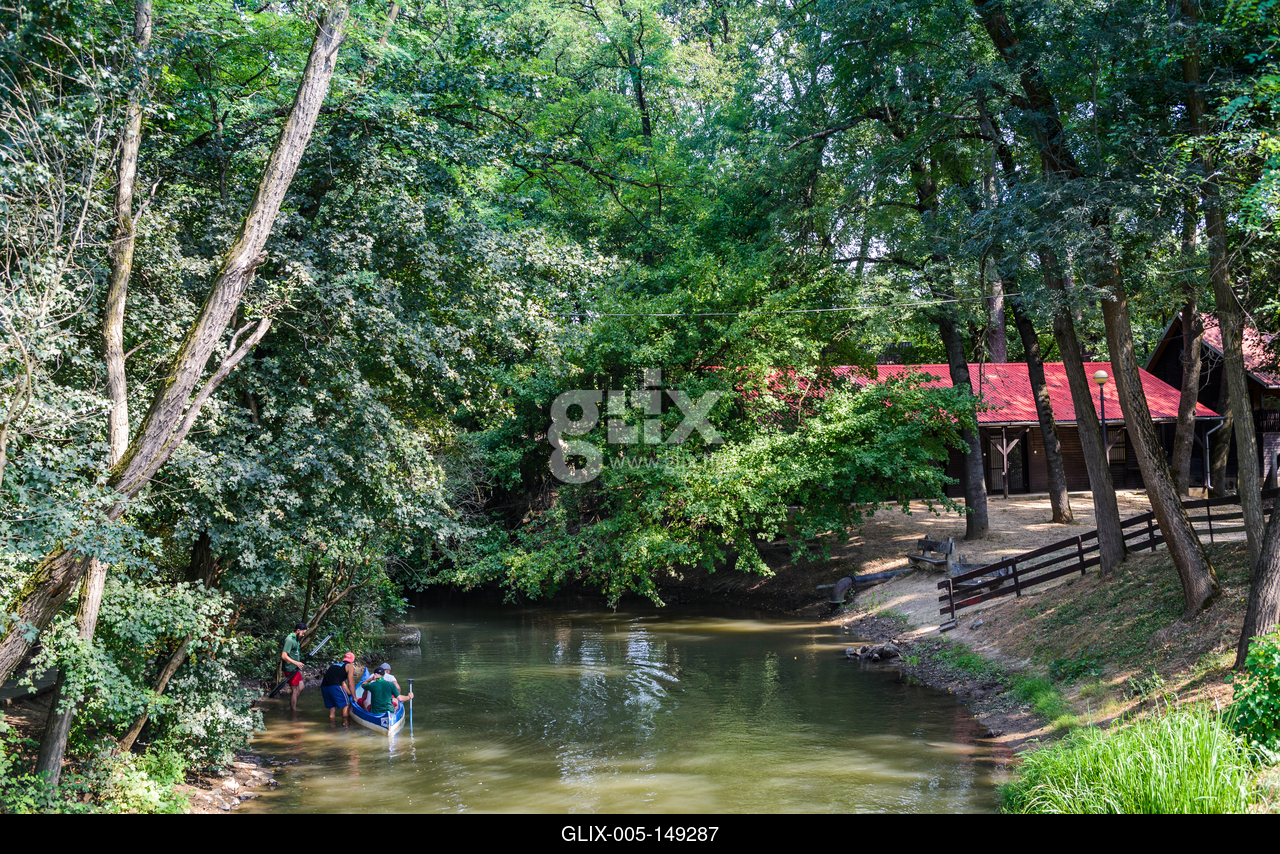 Vizitűrázók várakoznak kenuikkal az Öreg-Túr folyónál, vagyis a Túr folyó szabályozatlan szakaszán a "Kisbukónál" (Sonkádi osztómű), Sonkád település közelében.