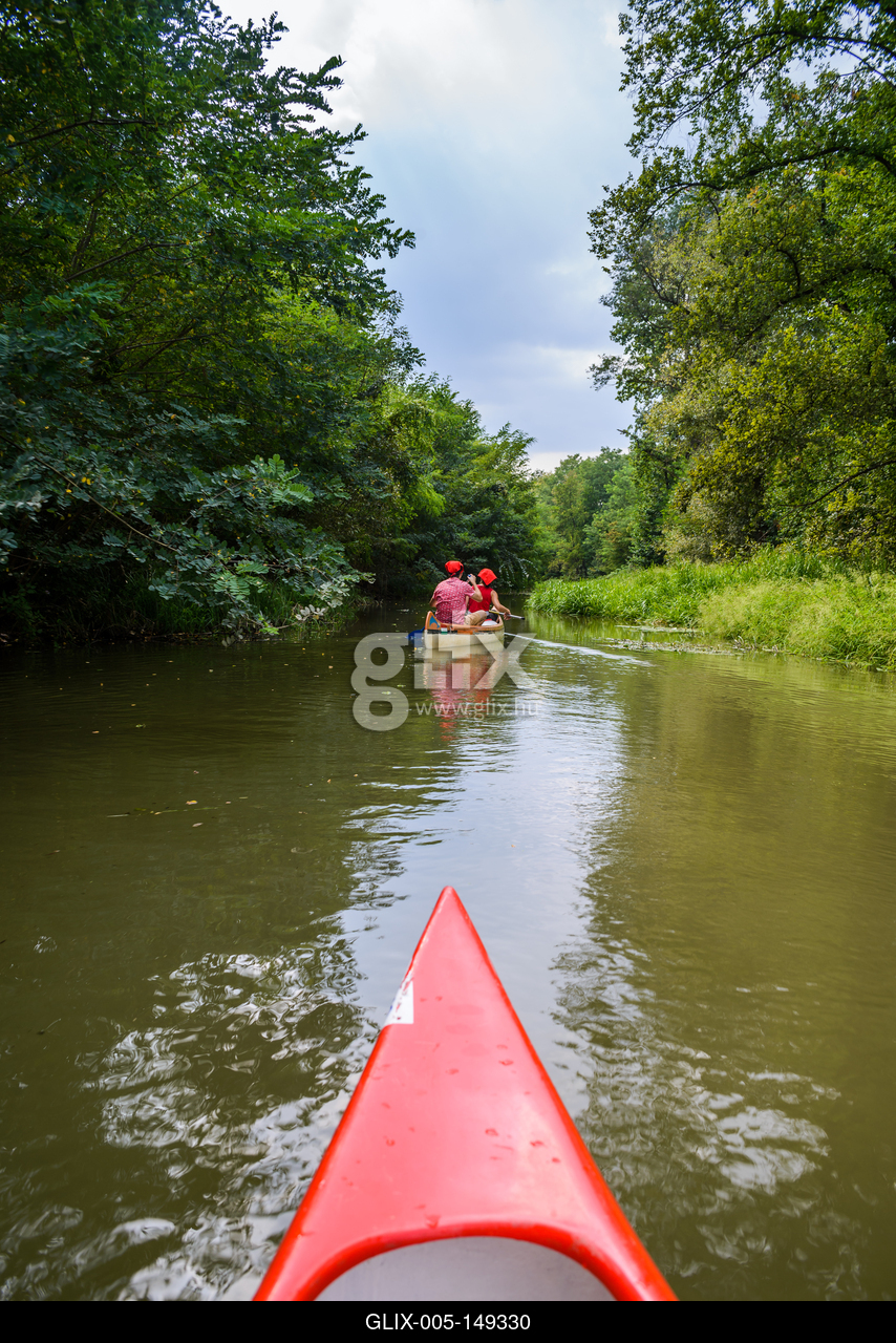 Vizitúrázók eveznek kenuikkal az Öreg-Túr folyón, vagyis a Túr folyó szabályozatlan szakaszán, Sonkád település közelében.