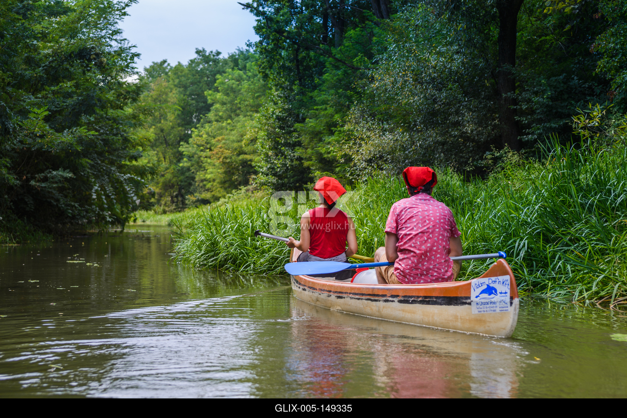 Vizitúrázók eveznek kenuikkal az Öreg-Túr folyón, vagyis a Túr folyó szabályozatlan szakaszán, Sonkád település közelében.
