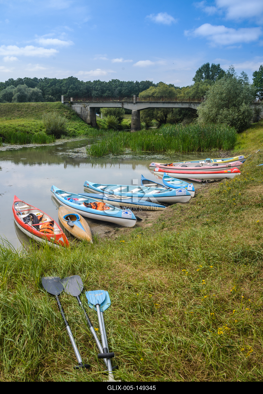 Vizitúrázók kenujai várakoznak a Túrcsatornán egy pihenőnél, Tiszaberek közelében.