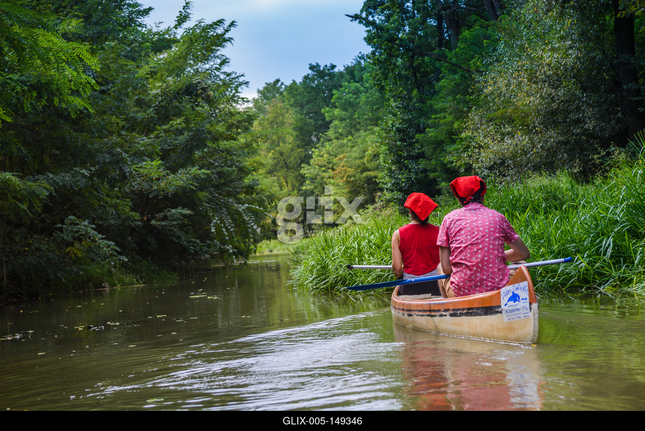 Vizitúrázók eveznek kenuikkal az Öreg-Túr folyón, vagyis a Túr folyó szabályozatlan szakaszán, Sonkád település közelében.