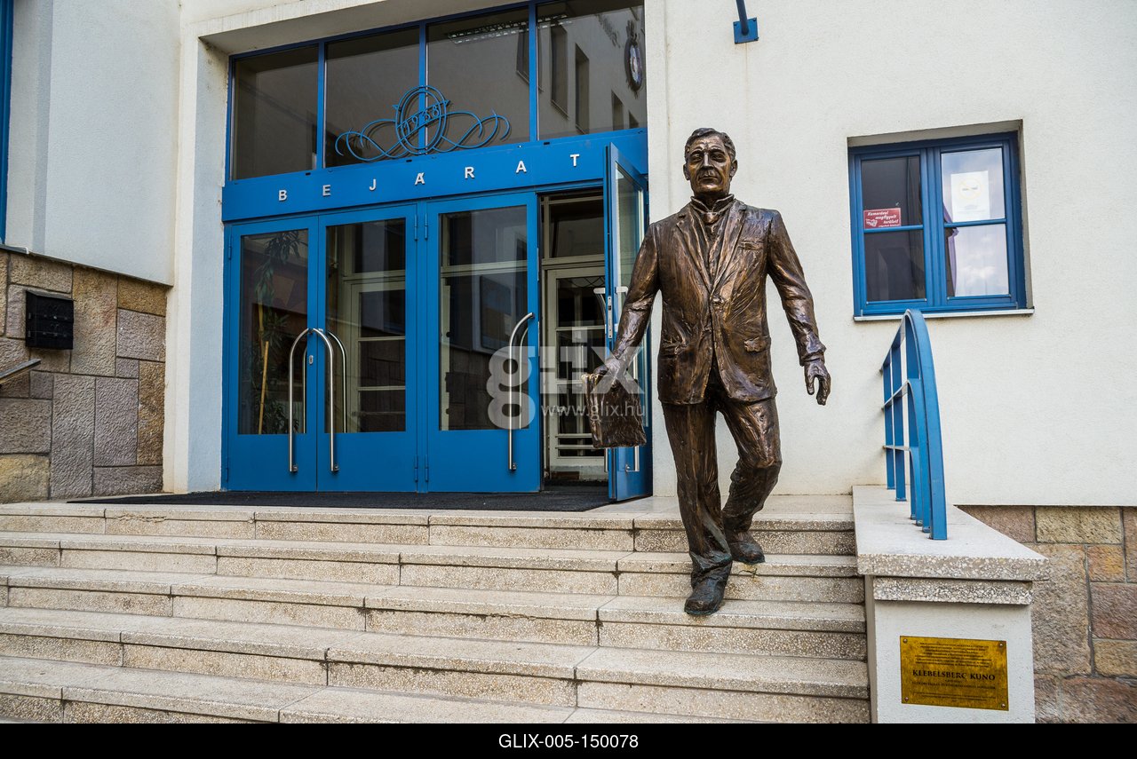 Gróf Klebelsberg Kuno egykori vallás- és közoktatásügyi miniszter szobra Székesfehérvár belvárosában a Ciszterci rend Szent István Gimnáziumának bejárati lépcsőjén. (Pető Hunor alkotása)