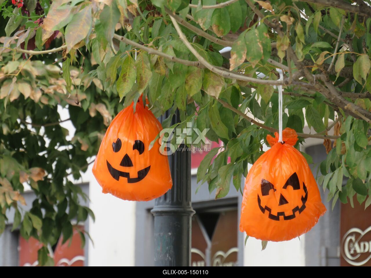 Székesfehérvár, 2018. október 22.Mindszentek (Halloween) alkalmából fára akasztott mókás figurák.