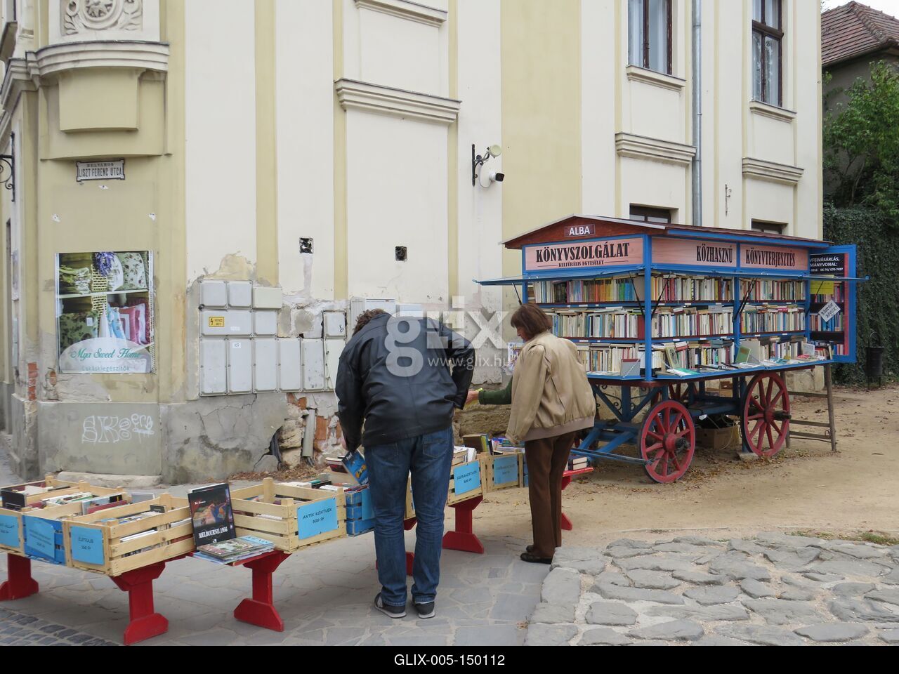Székesfehérvár, 2018. október 22.Utcai könyvárusítás. Könyveket böngészõk.