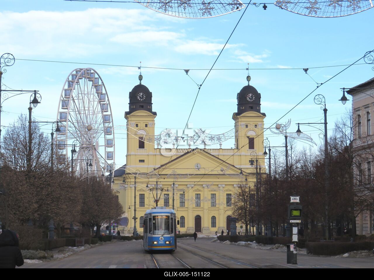 Debrecen, 2019. január 19.A debreceni református nagytemplom a Kossuth Lajos téren. Tõle balra a White Star nevû óriáskerék.