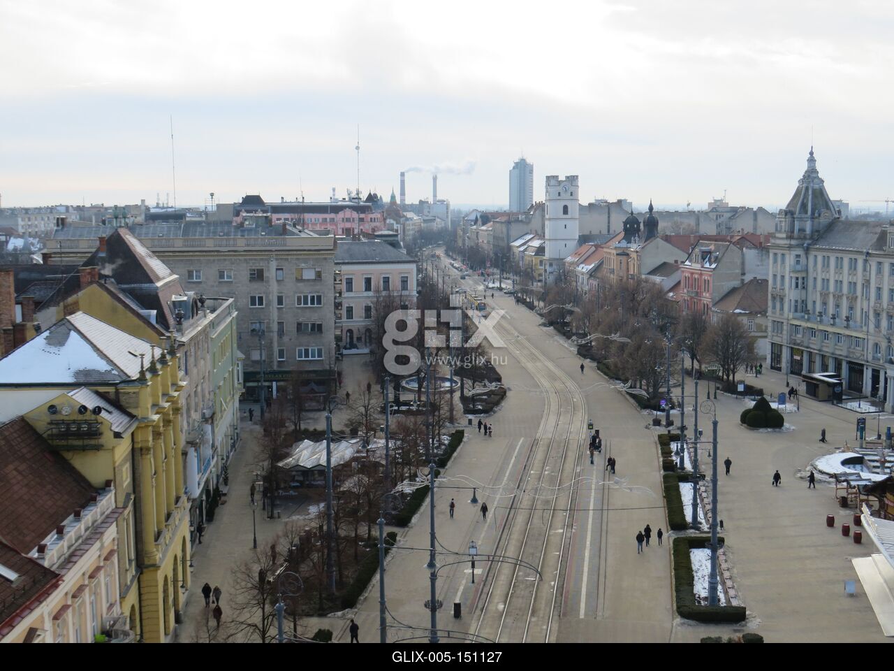 Debrecen, 2019. január 19.A Kossuth Lajos tér és a Piac utca látképe a református nagytemplom tetejérõl.