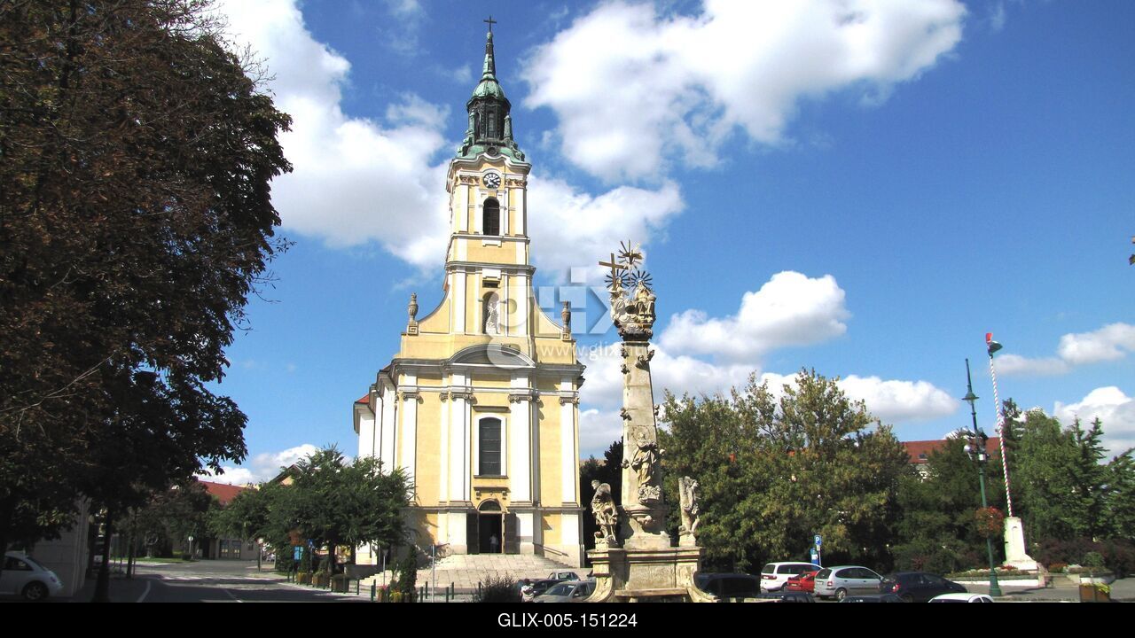 Szekszárd, 2010. szeptember 7.A szekszárdi fõtér, a Béla Király tér az Urunk mennybemenetele templommal (XIX. szd.) és a Szentháromság szoborral (XVIII.szd.). Az utóbbit 1753-ban emelték az 1738–1740-es pestisjárvány emlékére.