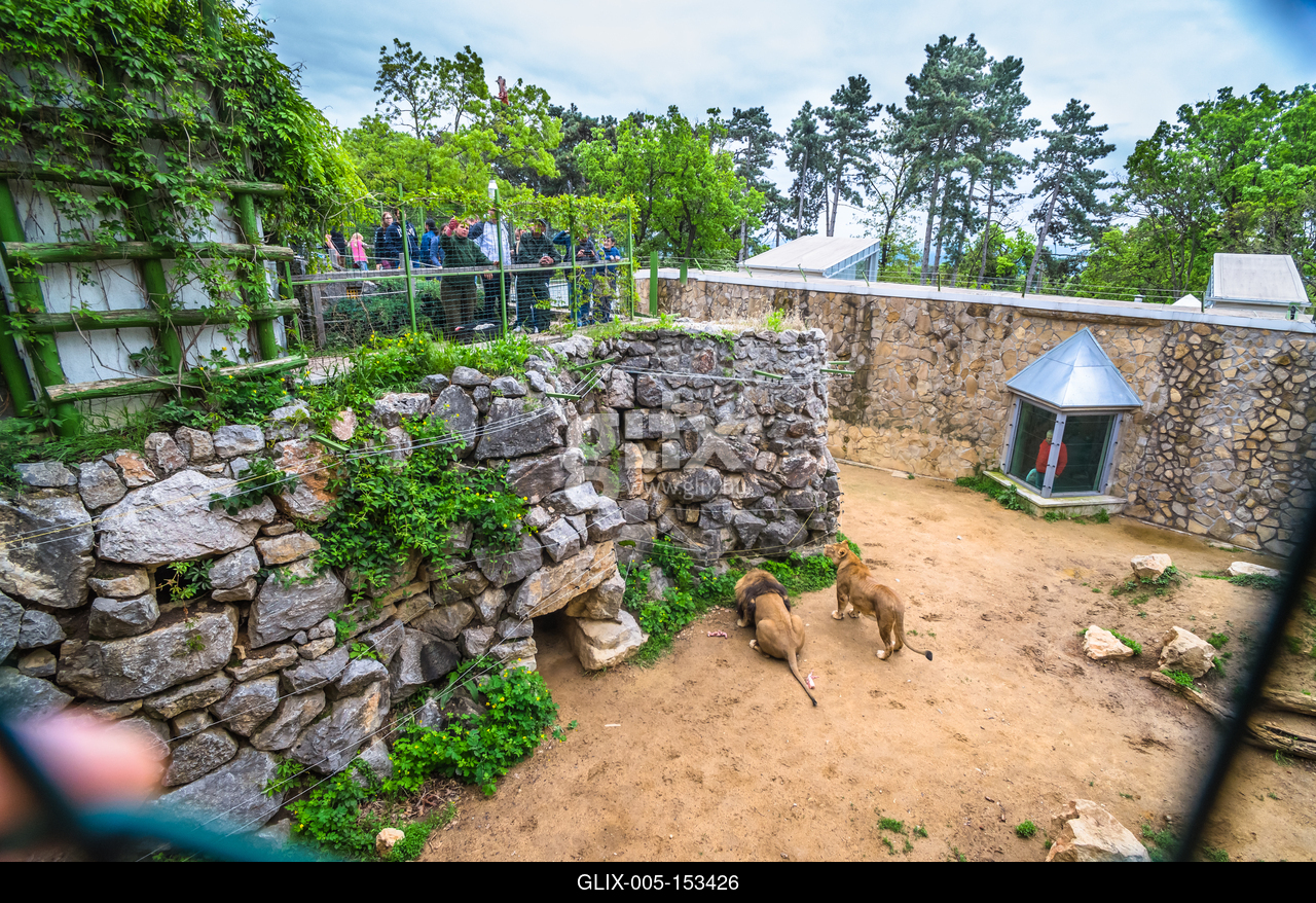 Oroszlánokat etetnek a pécs állatkertben. A Pécsi Állatkert és Akvárium-Terrárium a Mecsek oldalában található állatkert.