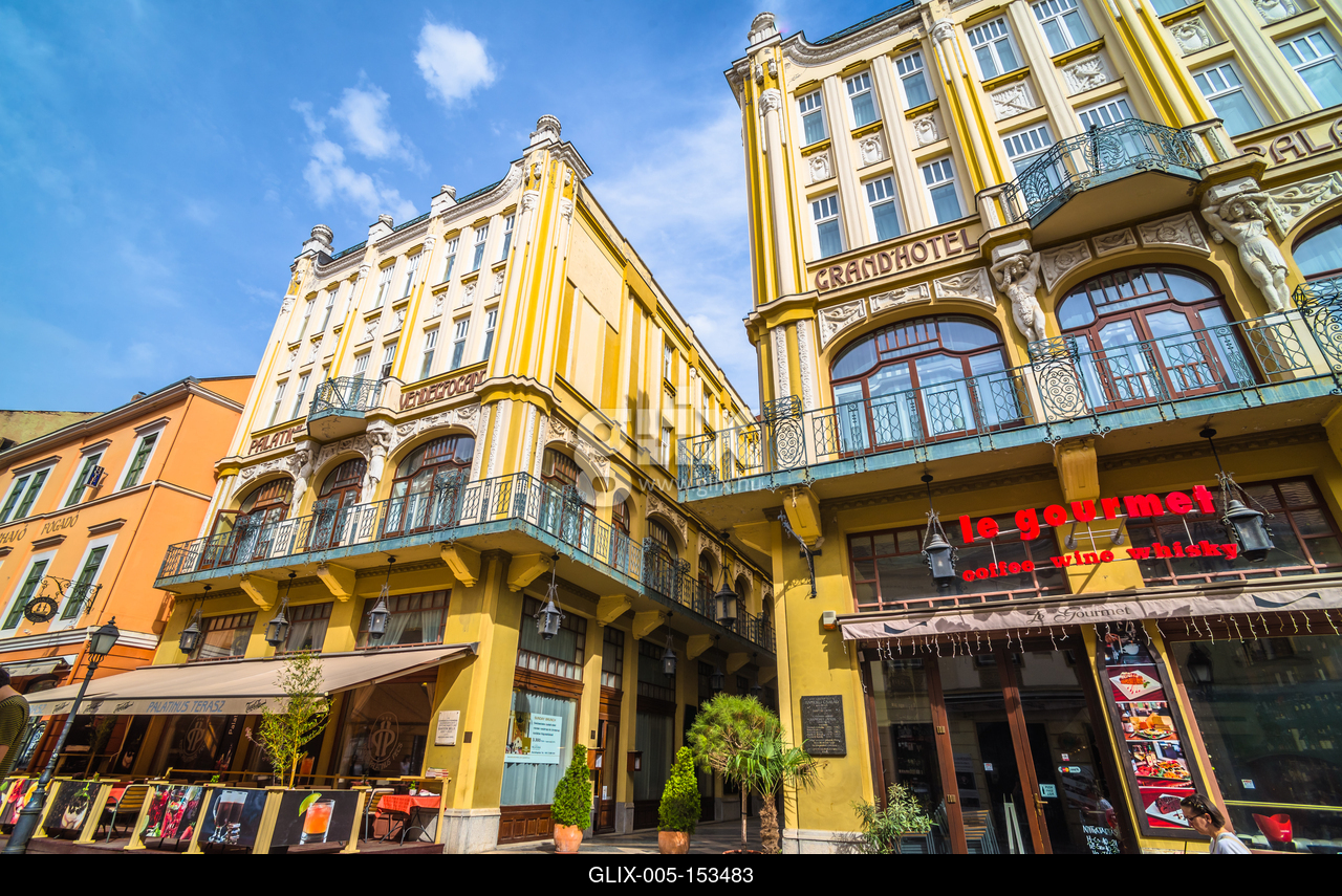A szecessziós stílusú Palatinus Szálló épülete Pécs belvárosában, a Király utcában. Az épület terveit Pilch Andor készítette.
