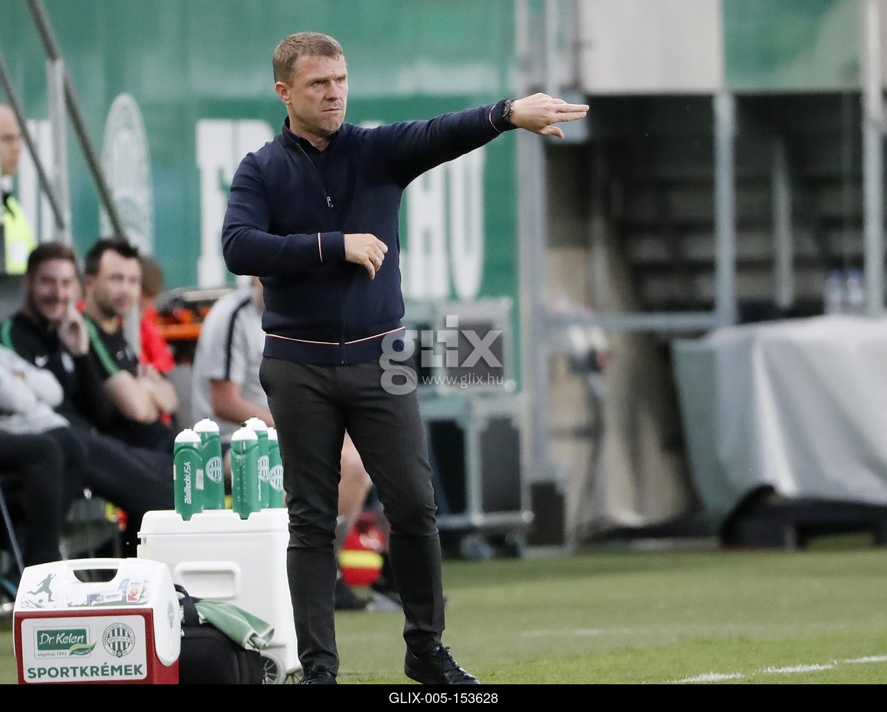 BUDAPEST, HUNGARY - MAY 11: Head coach Serhiy Rebrov of Ferencvarosi TC reacts during the Hungarian OTP Bank Liga match between Ferencvarosi TC and DVSC at Groupama Arena on May 11, 2019 in Budapest, Hungary.