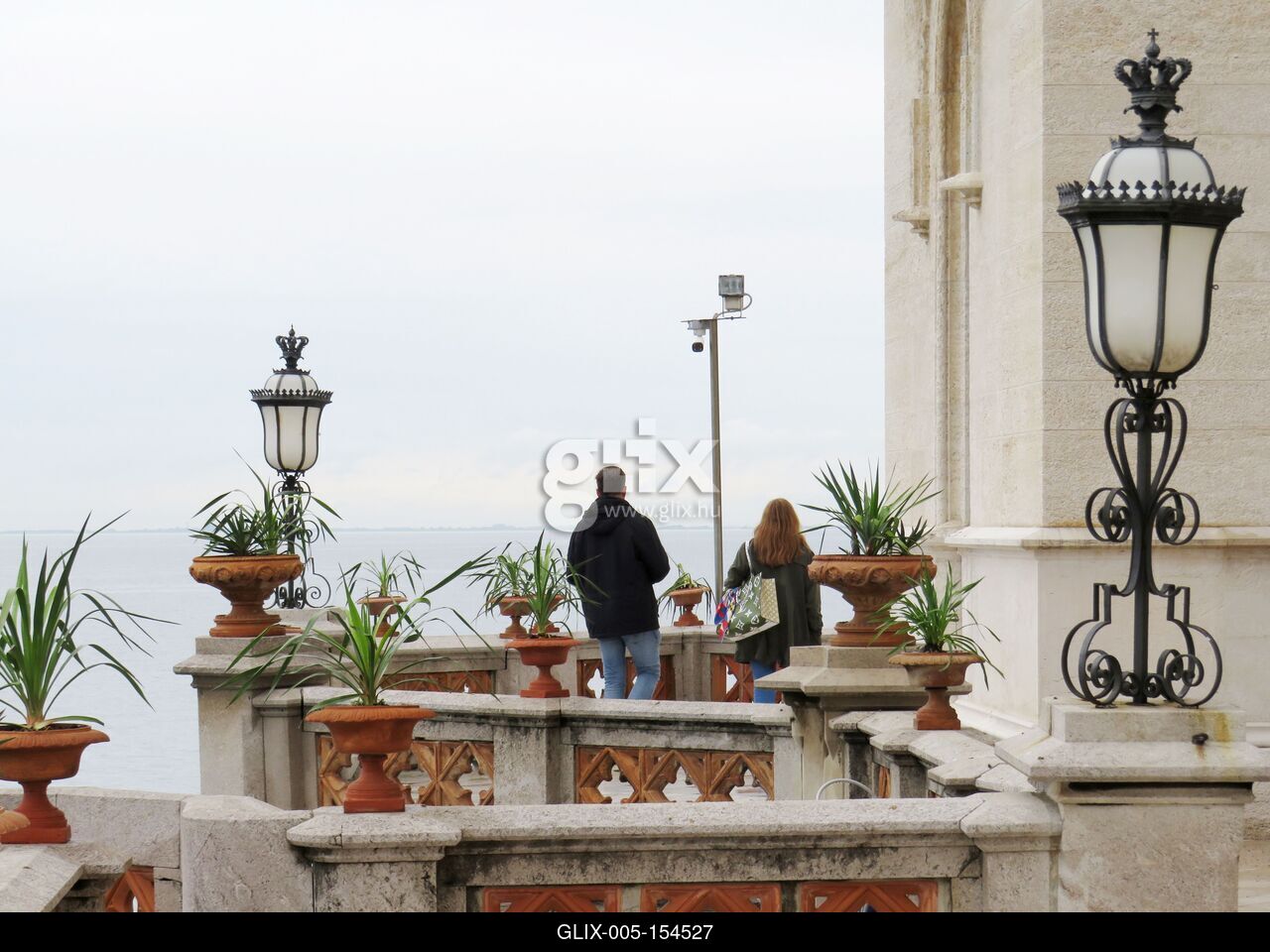 Trieszt (Trieste-Italy), 2019. május 21.Visitors on the Terrace of the Miramare Castle. The Castle is a romantic palace and ornamental garden from the 19th century. It was built by Carl Junker in 1860 for Miksa Habsburg Archduke and his wife, Sarolta, a Belgian Royal Princess with Istrian white marble in the Gulf of Trieste becoming part of Italy ever since.Látogatók a Miramare-kastély teraszán. A kastély egy XIX századi romantikus palota és díszkert, amely Habsburg Miksa osztrák fõherceg és felesége, Sarolta belga királyi hercegnõ részére épült isztriai fehér márványból az azóta Olaszországhoz csatolt Trieszti-öbölben. Carl Junker tervei szerint épült 1860-ban.