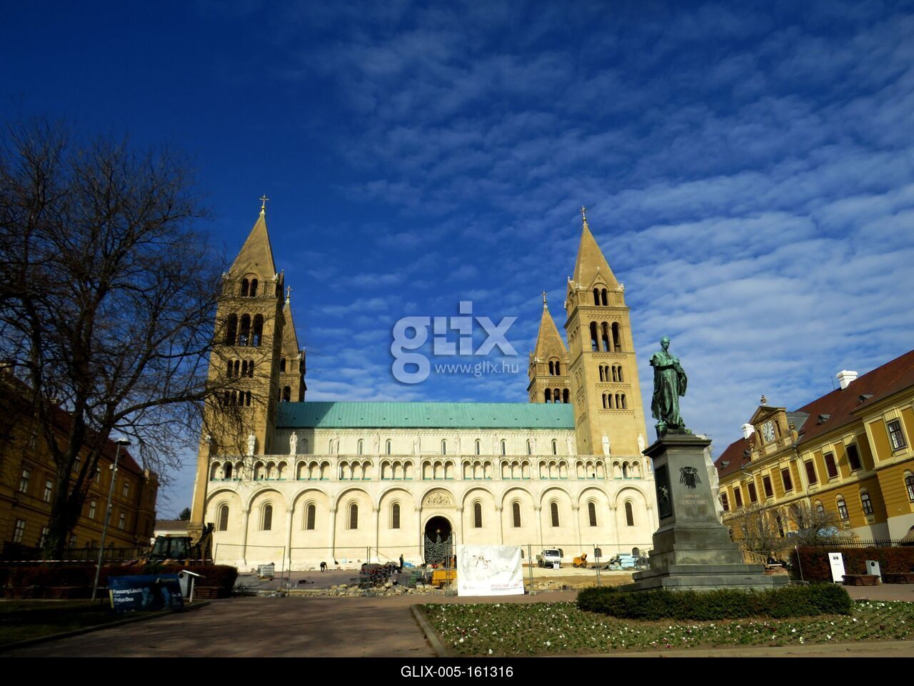 Pécs, 2018. november 17.A pécsi Dóm, Szent Péter- és Szent Pál-székesegyház. A 11. századi alapokkal rendelkezõ székesegyház mai formáját a 19. század végén érte el Schmidt Frigyes (Friedrich von Schmidt) tervei alapján. Elõtte Szepessy Ignácz püspök szobra.