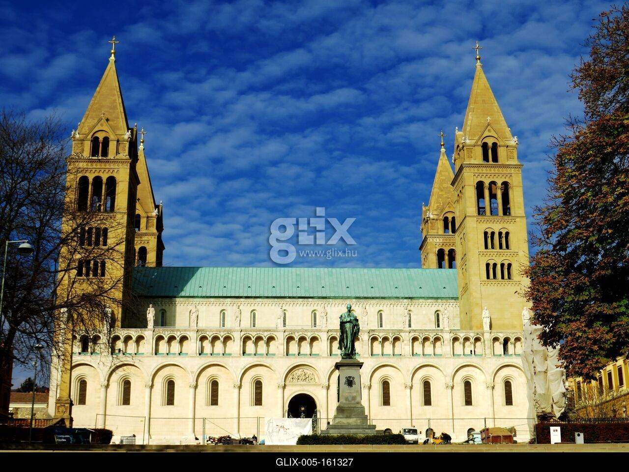 Pécs, 2018. november 17.A pécsi Dóm, Szent Péter- és Szent Pál-székesegyház. A 11. századi alapokkal rendelkezõ székesegyház mai formáját a 19. század végén érte el Schmidt Frigyes (Friedrich von Schmidt) tervei alapján. Elõtte Szepessy Ignácz püspök szobra. Alkotója: Kiss György (1852).