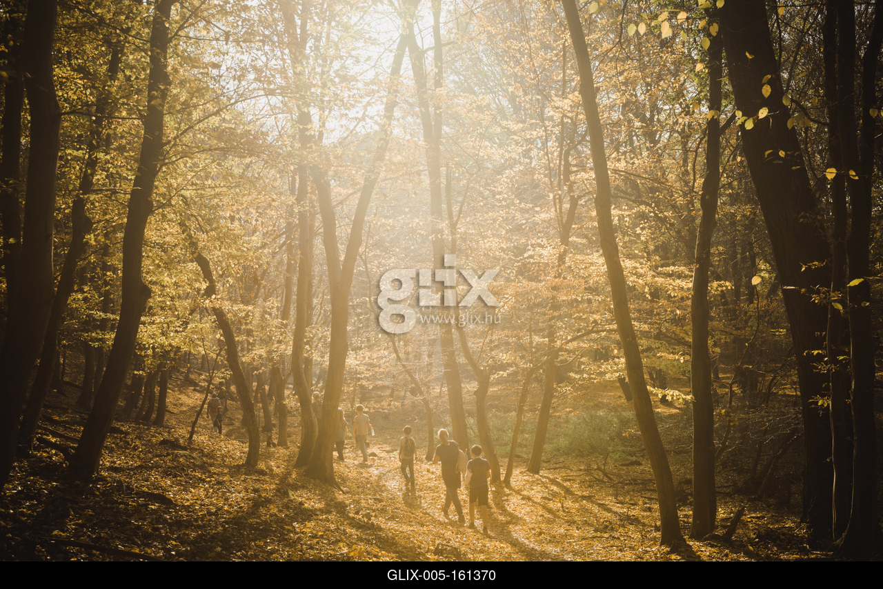 Kirándulók az őszi erdőben a Velencei-hegységben, Sukoró környékén.