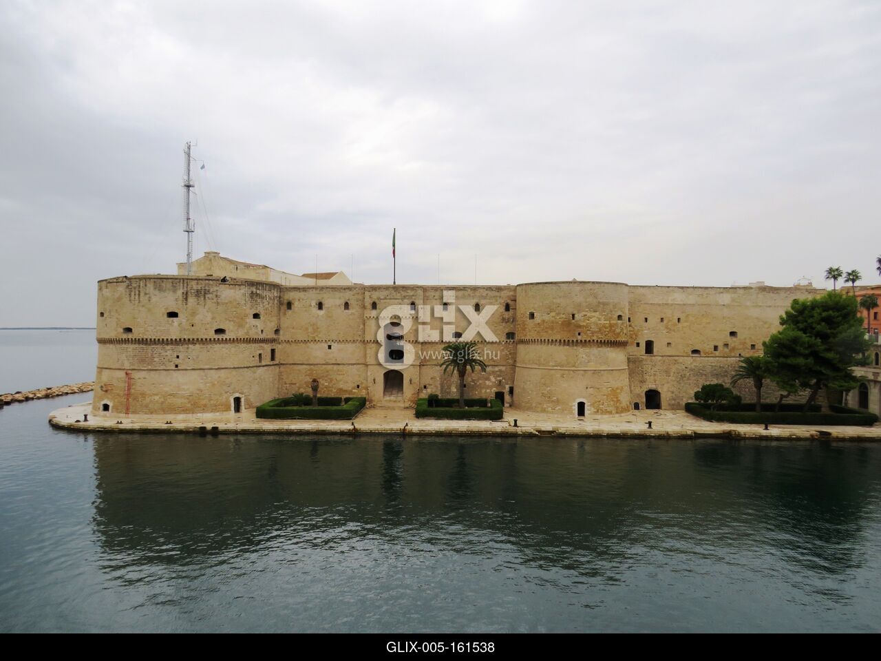 Taranto (Italy), 2019. október 7.The Aragonese Castle (Castello Aragonese).built In the 15th C. on the Adriatic coast.Since 1887 it has been owned by the Italian Navy.Az Aragóniai kastély (Castello Aragonese) az Adriai-tenger partján. A XV. sz-ban épült. 1887 óta az olasz haditengerészet tulajdona.