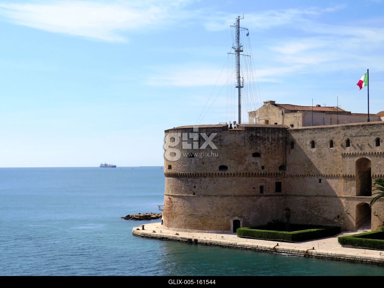 Taranto (Italy), 2019. október 8.The Aragonese Castle (Castello Aragonese).built In the 15th C. on the Adriatic coast.Since 1887 it has been owned by the Italian Navy.Az Aragóniai kastély (Castello Aragonese) az Adriai-tenger partján. A XV. sz-ban épült. 1887 óta az olasz haditengerészet tulajdona.