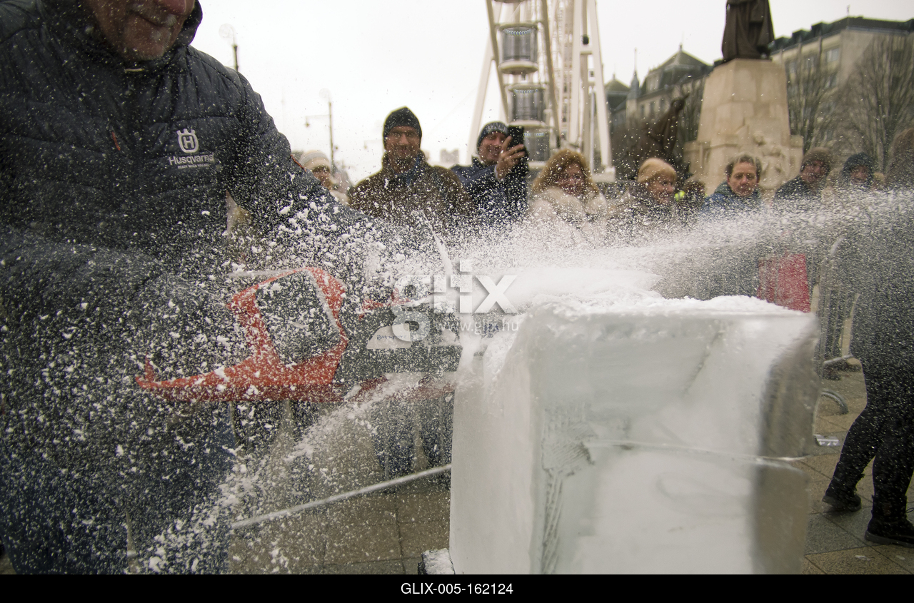 Debreceni diákok, a művészeti vezető tanáraik segítségével, jégszobrokat készítettek a Kossuth téren az adventi ünnepek témáiból.