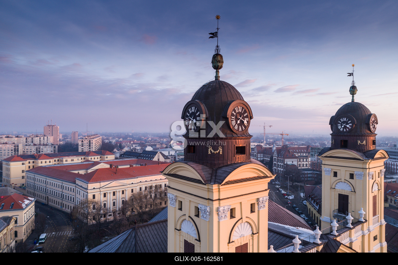Aerial photo of Reformed Great Church in Debrecen city, Hungary