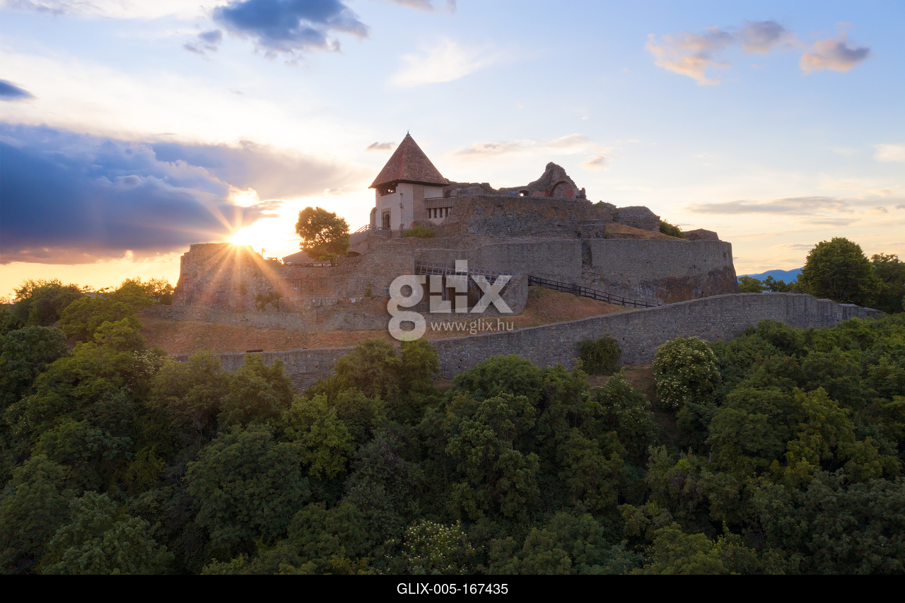 Amazing aerial landscapes about the Visegrad Castle in Hungary. Fantastic historical castle ruin in Danube bend. Populad tourist destination