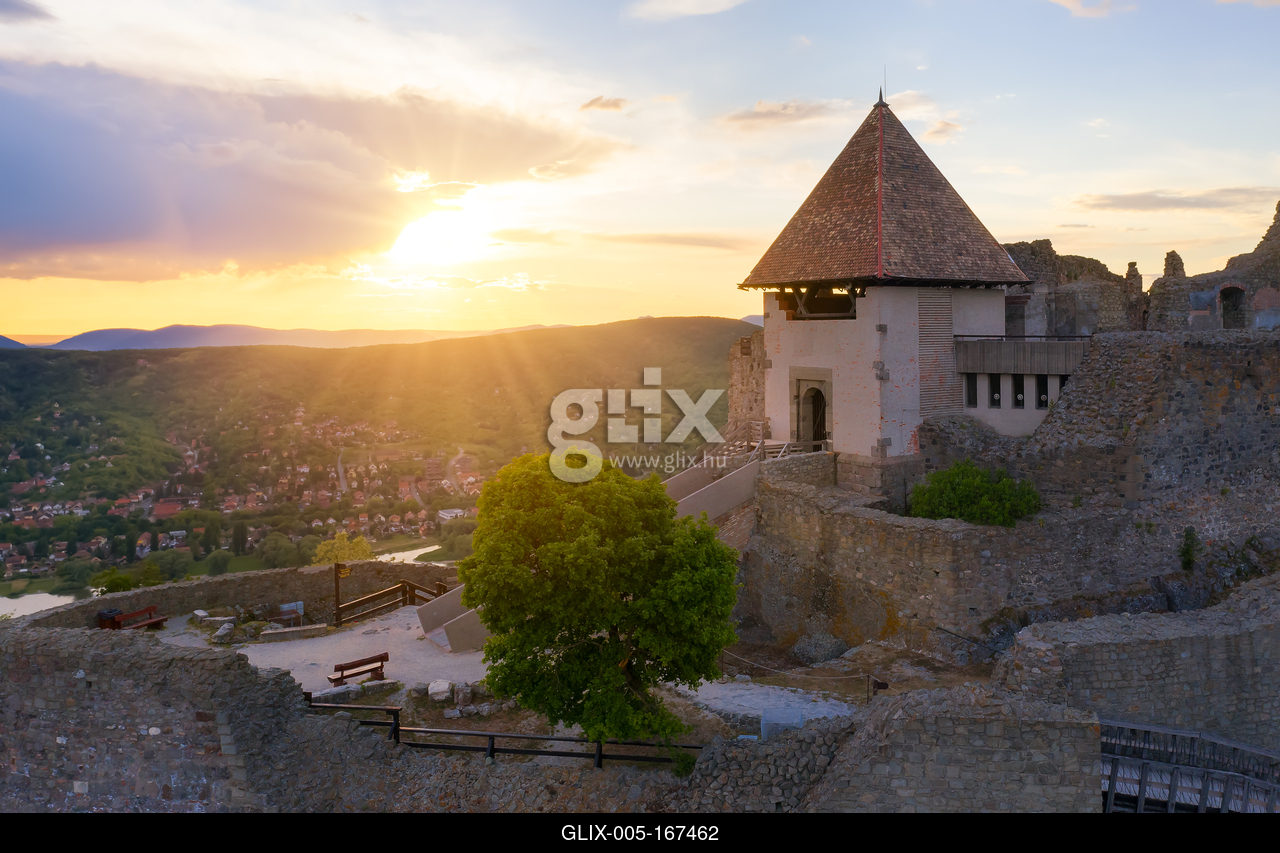 Amazing aerial landscapes about the Visegrad Castle in Hungary. Fantastic historical castle ruin in Danube bend. Populad tourist destination