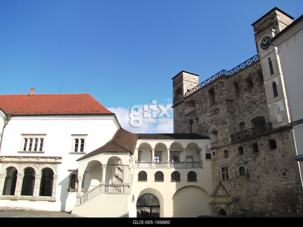 Sárospatak, 2016. március 16.A sárospataki Rákóczi vár és kastély belsõ udvara. Szemben a Lorántffy-loggia. A lépcsõt és a loggiát Lorántffy Zsuzsanna építtette a XVII. sz-ban. Ez az udvar legértékesebb része. Balra fent a vármúzeum. Jobbra a közel négyzetes alaprajzú, ötszintes középkori Vöröstorony.