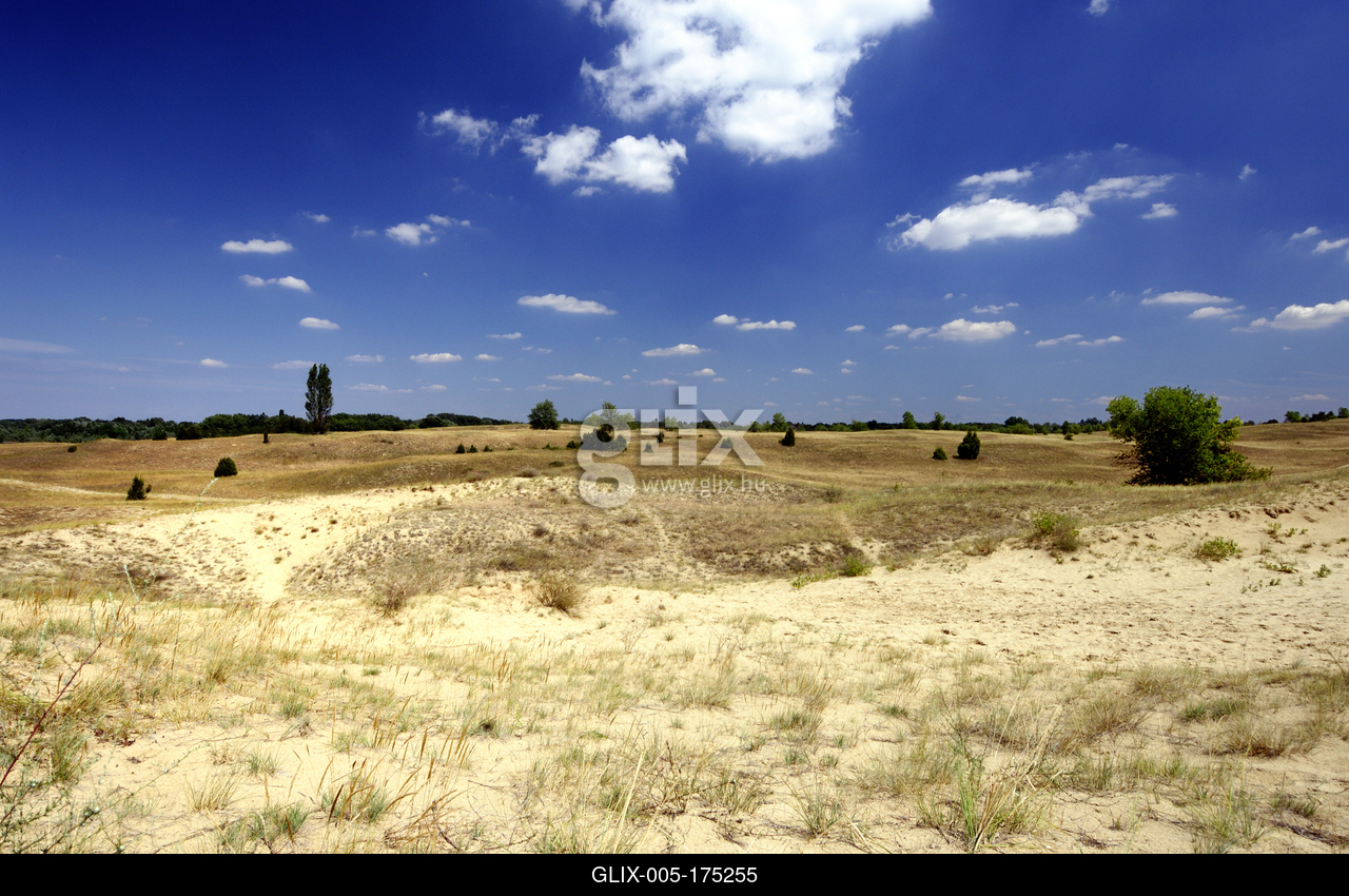 Homokbuckák Fülöpháza határában. A Homokhátság buckavonulatai csak néhány tíz méterrel magasodnak a Duna és Tisza-völgy fölé. A homokterületek az Õs-Duna hordalékkúpjainak maradványa. A szinte érintetlen állapotban levõ homokbuckás