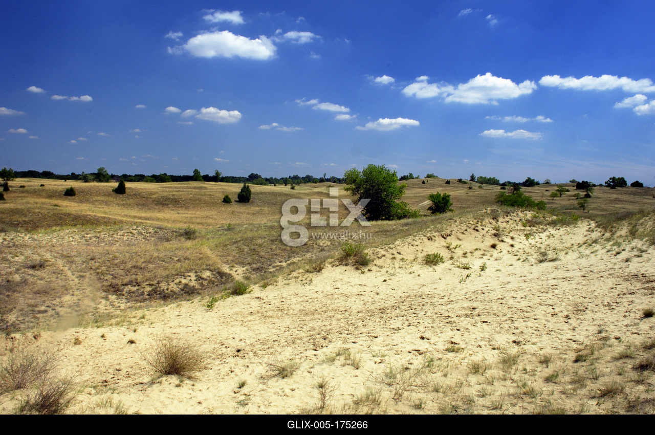 Homokbuckák Fülöpháza határában. A Homokhátság buckavonulatai csak néhány tíz méterrel magasodnak a Duna és Tisza-völgy fölé. A homokterületek az Õs-Duna hordalékkúpjainak maradványa. A szinte érintetlen állapotban levõ homokbuckás