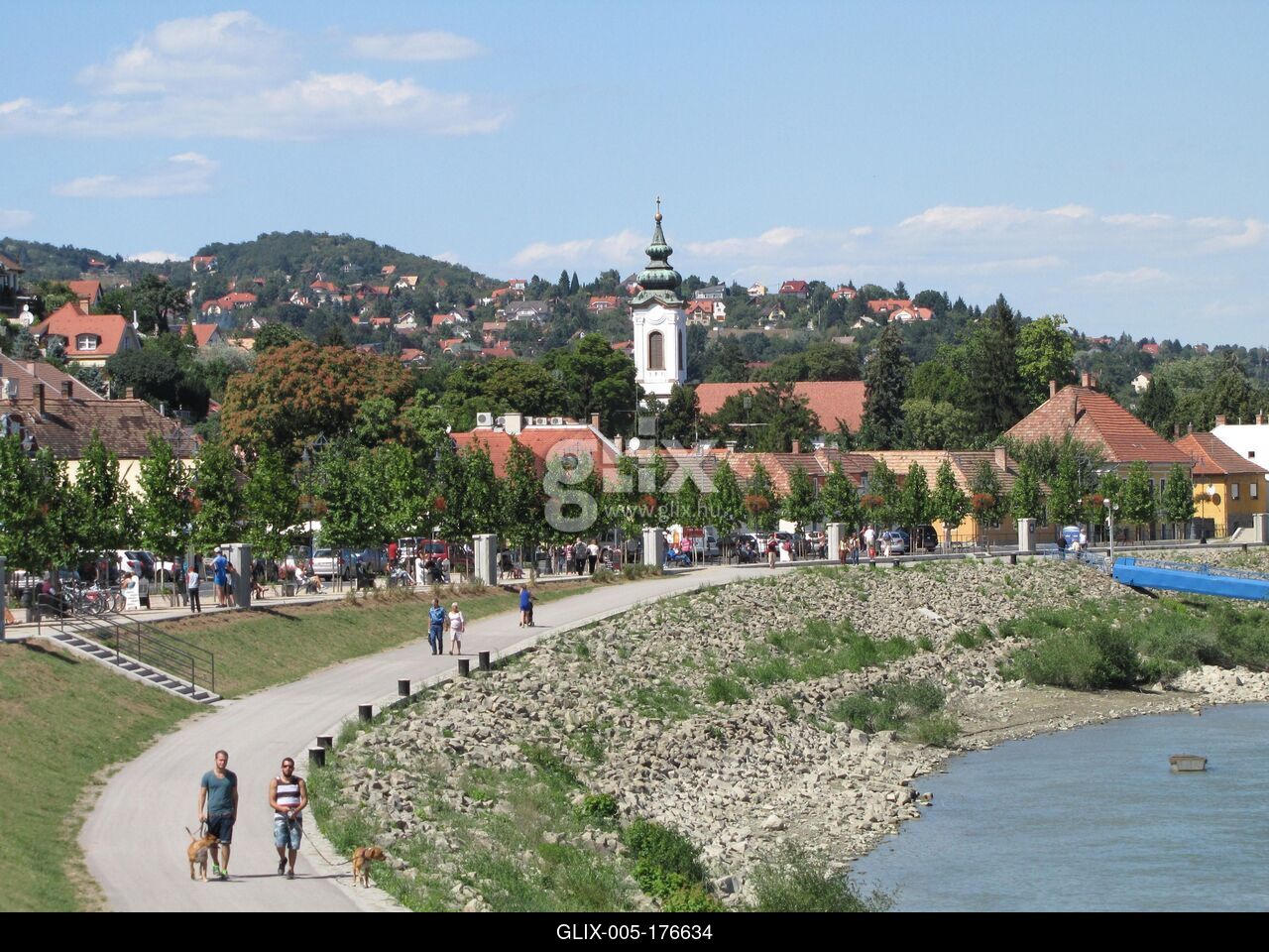 Szentendre, 2015. július 31.A szentendrei Dunapart sétáló emberekkel. Háttérben a város.